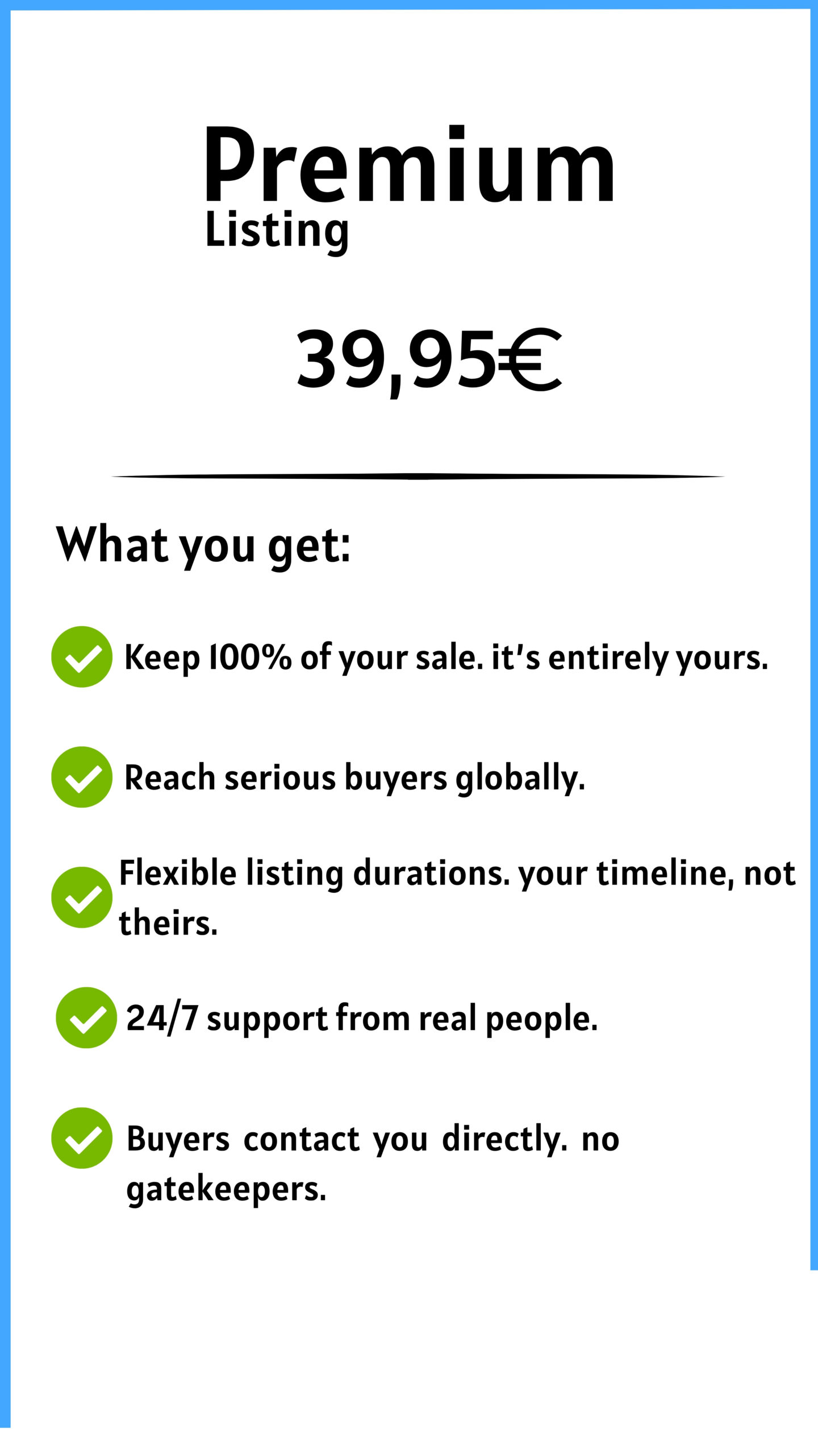 There are no seller commissions on Chronbay. You only pay a single listing fee of €39.95, and the rest is yours to keep — no hidden charges or extra costs.